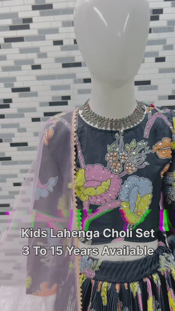 Black Floral Embroidered Kids Lehenga Choli