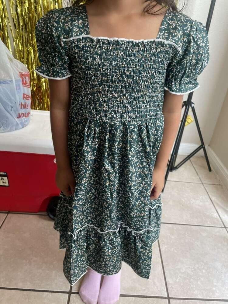 Glamgait Mehndi Green Floral Printed Short Sleeve A-Line Baby Dress